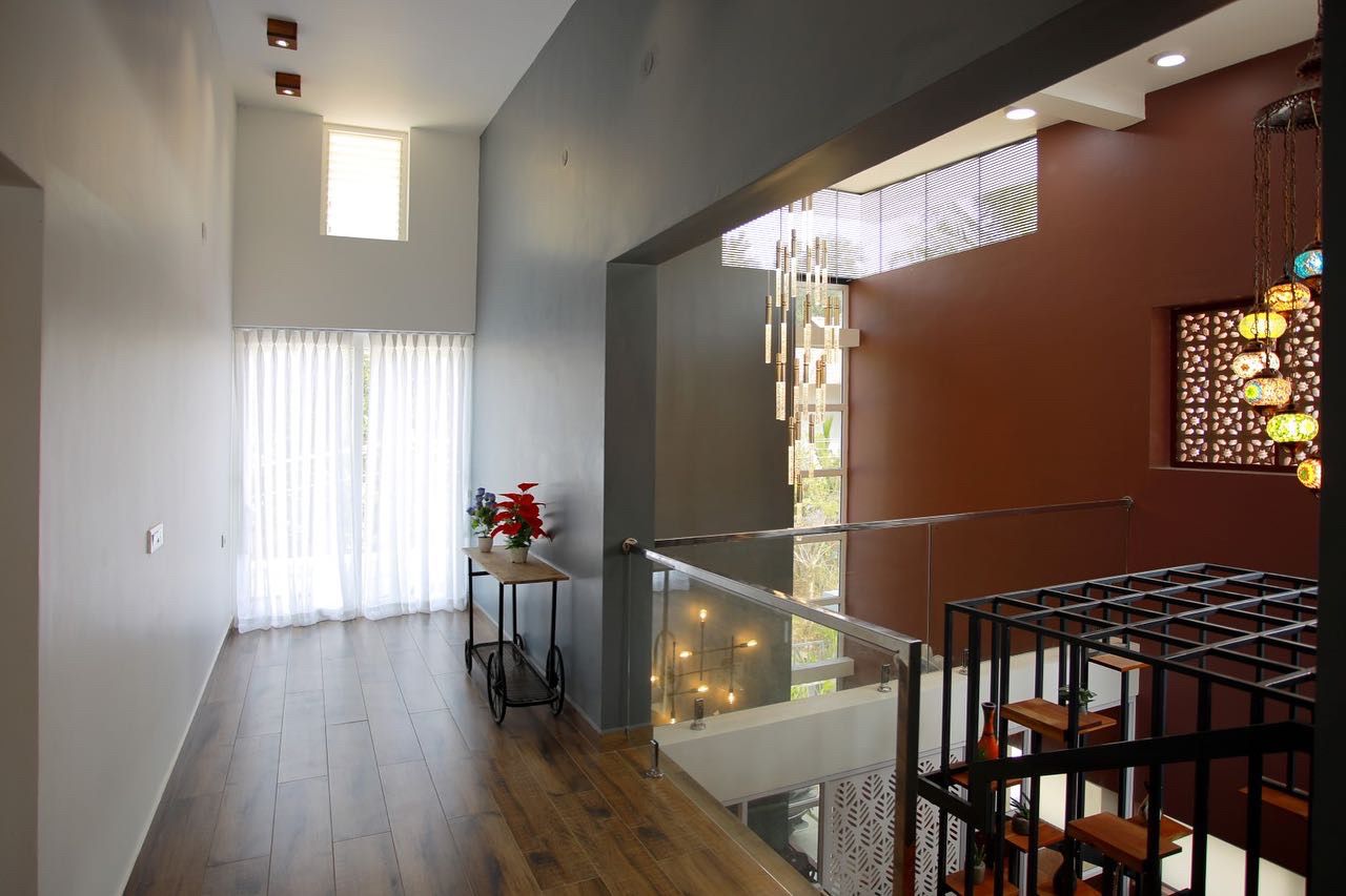 Location - Kurichy, Kottayam________ REQUIREMENTS * 2 Storied residence * Formal living * Informal living * Dining with open kitchen * Work area * 4 bedrooms with attached bathrooms * Balcony * Courtyard_____________________________ STYLE - Deconstructivism