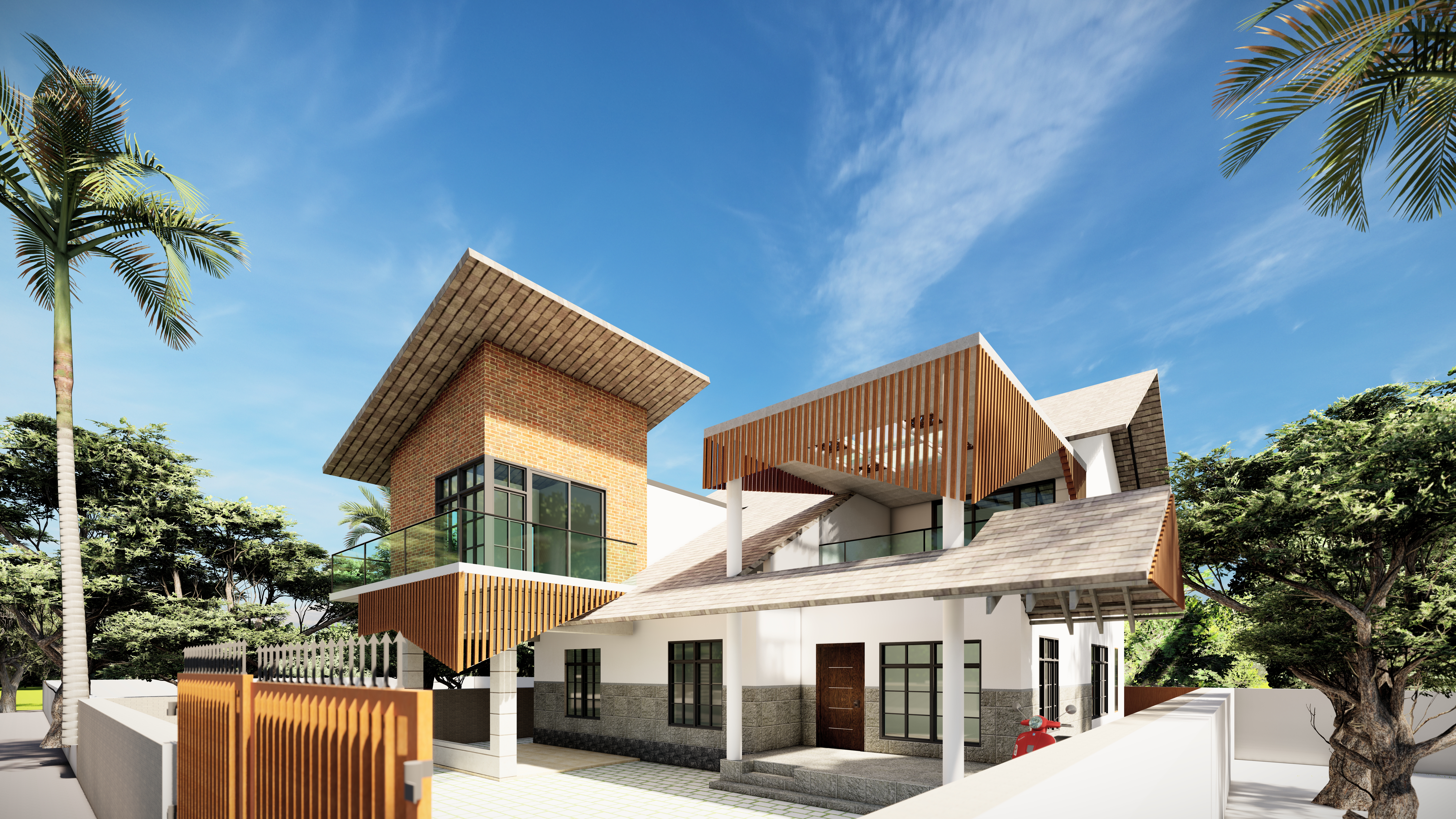 LOCATION : Kutoor, Pathanamthitta REQUIRMENTS : * New Formal living * Attached toilet for master bedroom * Add another floor with two bedrooms * Overall exterior makeover_______________________ STYLE : Contemporary